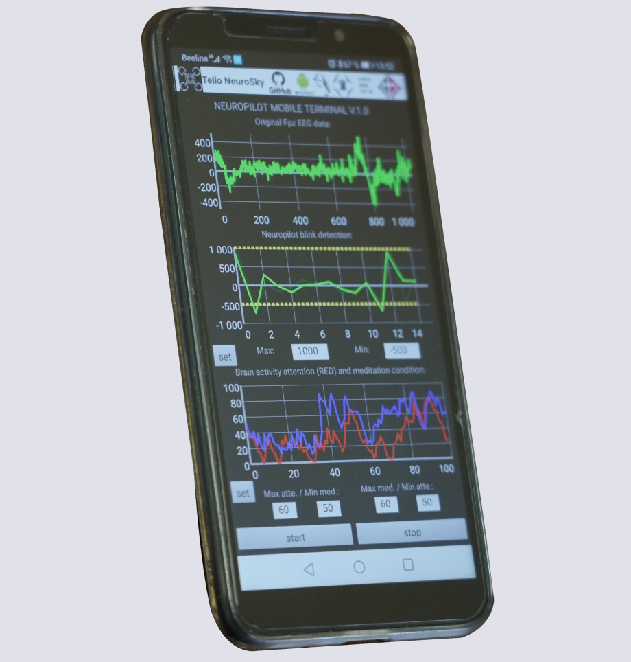 Мобильное приложение получает электросигналы, расшифровывает их и интерпретирует в команды для упарвления дроном или другим беспилотным устройством