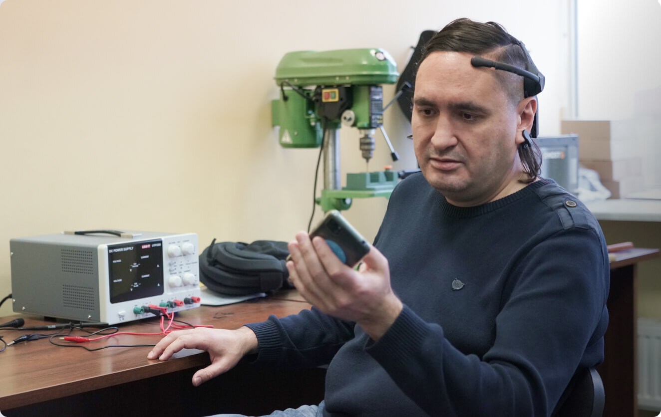 Устройство состоит из нейрогарнитуры, которую можно вмонтировать в каску, танковый шлем или фуражку, и специального приложения для смартфона.